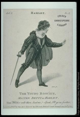sensational appearance as Hamlet at Covent Garden in 1804. Quotation at foot: