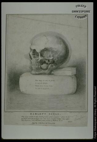 Hamlet's skull, according to the title at the base. A skull and a book are placed